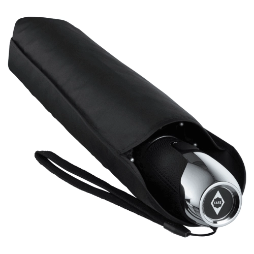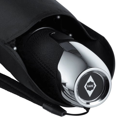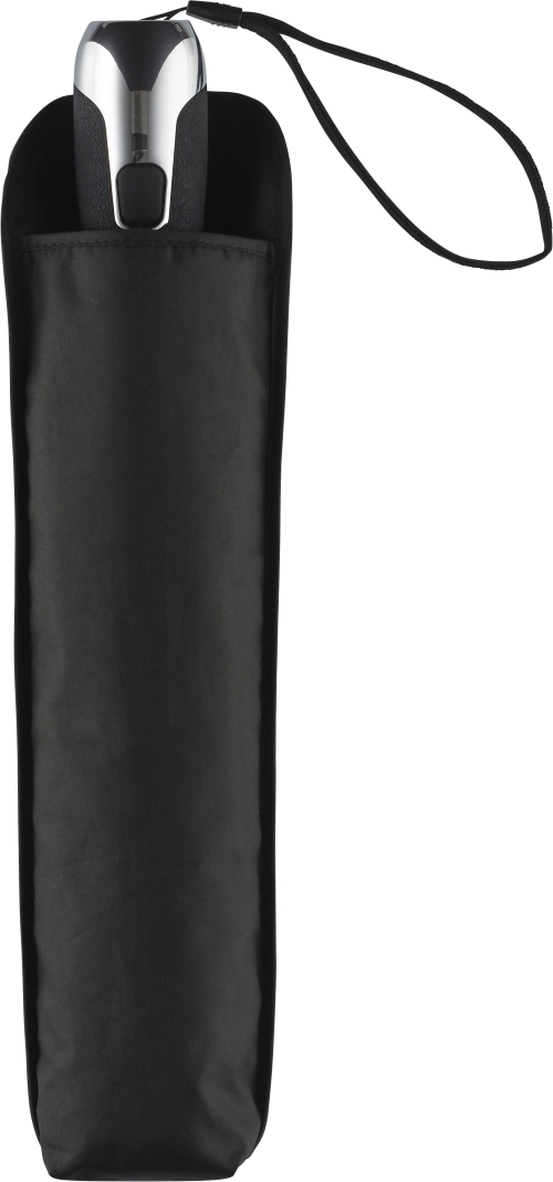 | Description | Elegant automatic open/close oversize mini umbrella with chromed metal details Convenient automatic open/close function for quick opening and closing, high-quality windproof system for maximum frame flexibility in stormy conditions, flexible fibreglass ribs with silver coloured metal joints, STANDARD 100 by OEKO-TEX® certified polyester ponge cover material made of recycled plastics, eco-friendly thanks to original waterSAVE cover material, silver coloured metal tips, comfortable Soft-Feel / metal handle with integrated push-button and promotional labelling option |